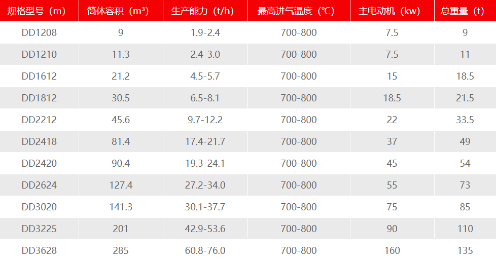 沙子烘干機技術參數
